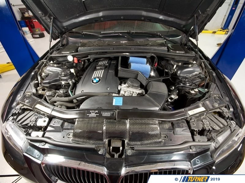 This BMW 335i air intake system is one of the easiest and most effective ways to increase your BMW’s performance. The kit includes all parts and installation instructions to replace the restrictive factory air box with a low-restriction, high-flow filtering system. The kit includes a one-piece precision molded twin intake tube, 16 gauge powder coated steel heat shield, and gasket — all assisting in blocking out hot engine air for cooler, denser air mass.