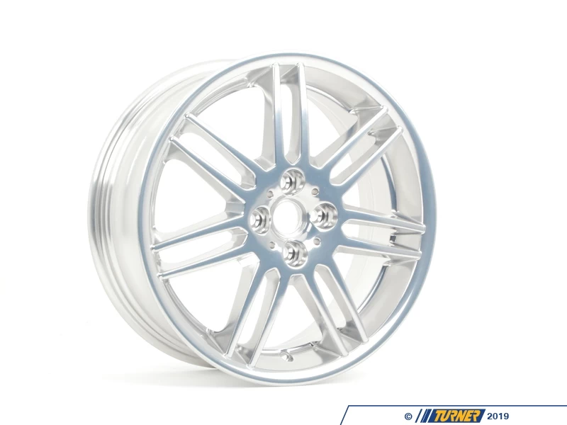Upgrade your Mini with this 17-inch double-spoke polished finish alloy wheel, perfect for enhancing the performance look of your vehicle. Direct from Mini, this wheel features a tighter double-spoke design with a full exposed wheel finished in clear coat over polish, ensuring a sleek and stylish appearance. Please note that center caps are not included, and this wheel is not compatible with vehicles equipped with 17″ John Cooper Works Sport Brake.