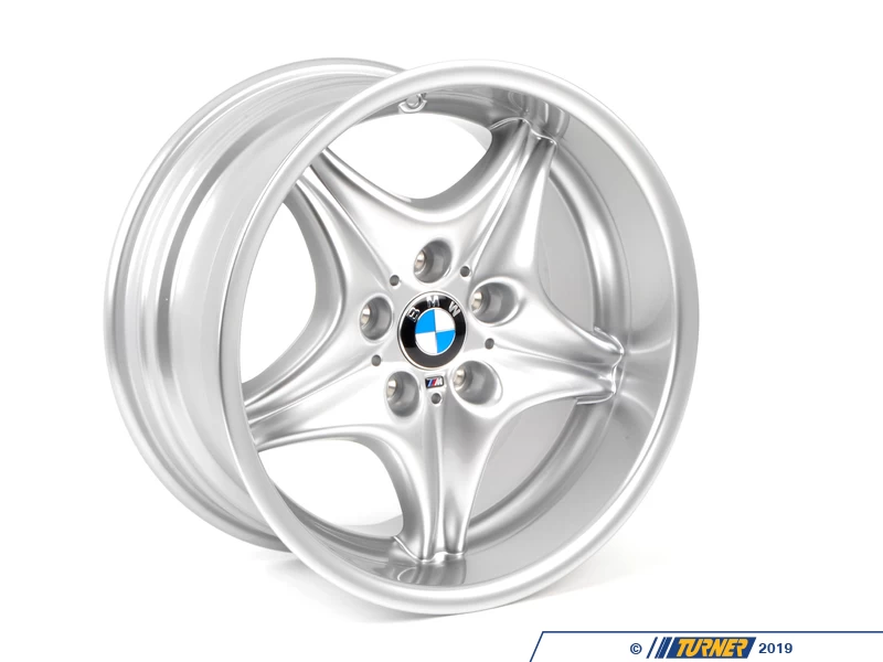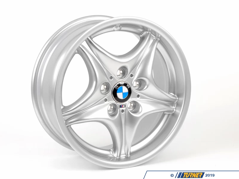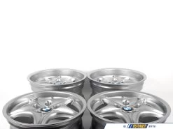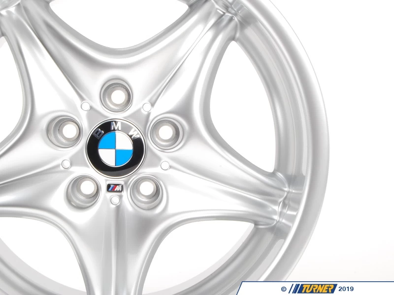 These are the factory wheels used on the M Roadster/M Coupe. If your original wheels are bent, damaged, or the finish has corroded these are your best option to restore the luster and factory appearance. These are the Genuine BMW Style 40 wheels in a staggered set – 17×7.5 ET41 and 17×9.0 ET8. This wheel set includes the factory BMW center caps.