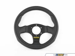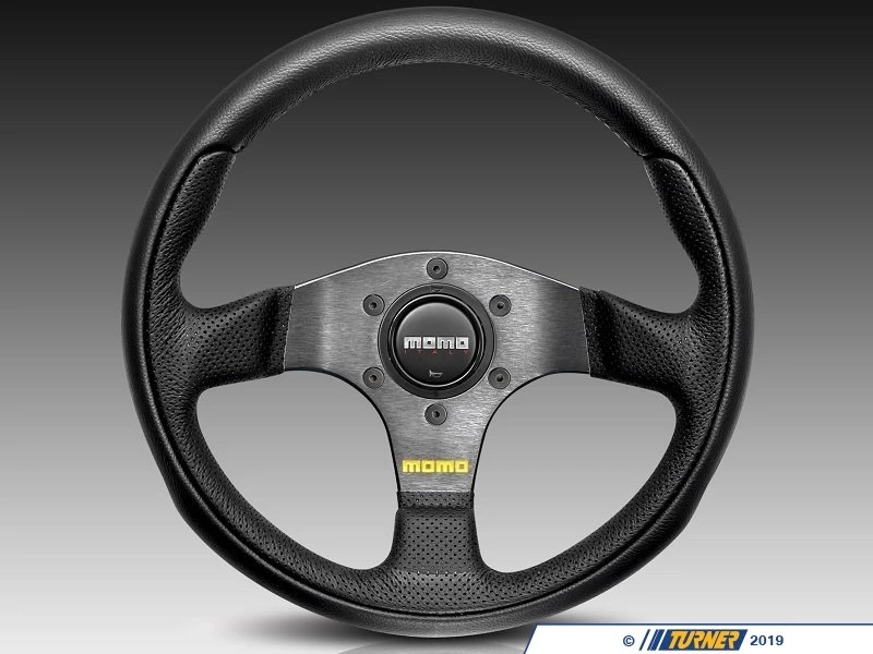 This steering wheel combines the best of all worlds for both track/street use and racing requirements. It has an anticorodal aluminum core, durable leather covering, and an ergonomic feel for comfort and control. An ideal size for most cars and drivers, and made by renowned MOMO Italy. This is a most attractive and low cost solution. Hub adapter required.