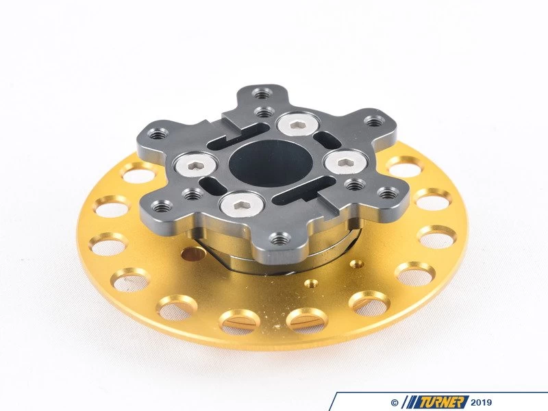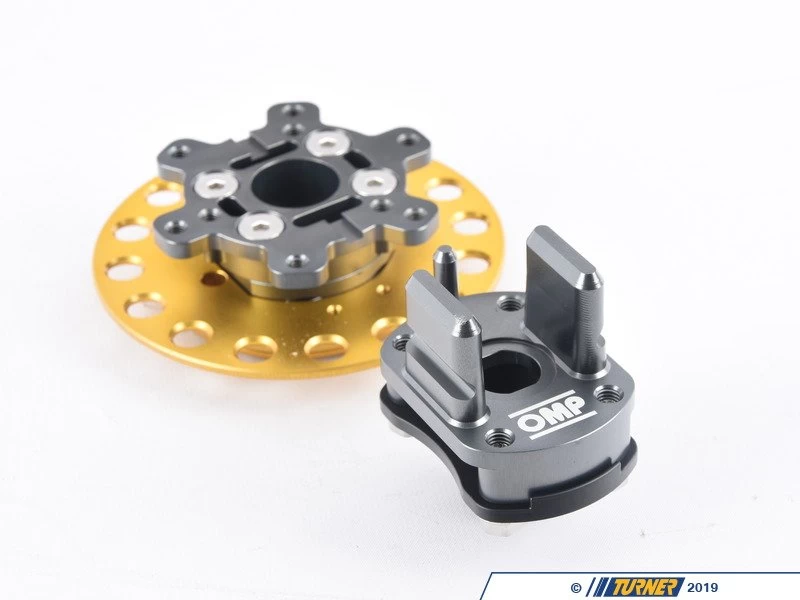 This bolts between your factory OMP, Sparco, MOMO, Max Pappis, NRG six-bolt steering wheel hub adapter (sold separately), and bolt your six-bolt steering wheel.Â